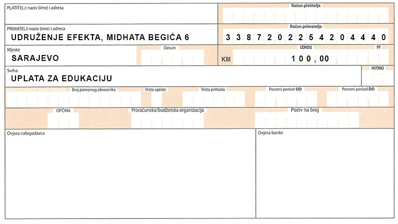 Ukupna cijena edukacije je 200KM, a svoje mjesto na edukaciji potrebno je unaprijed potvrditi uplatom avansa (kotizacije) od 100KM.
